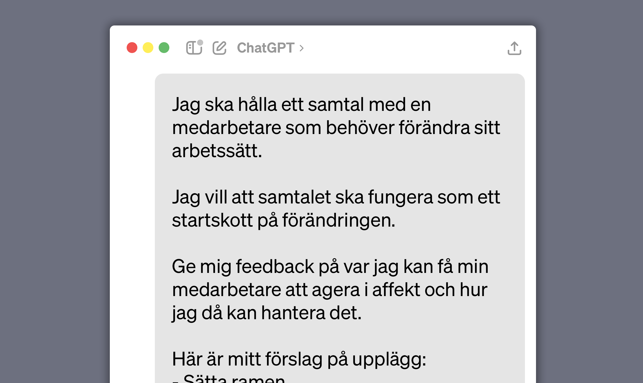 – ChatGPT ersätter inte kollegor eller ledarskap. Men det fyller ett tomrum som många chefer känner igen. Mellan mötena. Mellan besluten. I stunderna där du behöver tänka, formulera och välja riktning, säger Josefina.