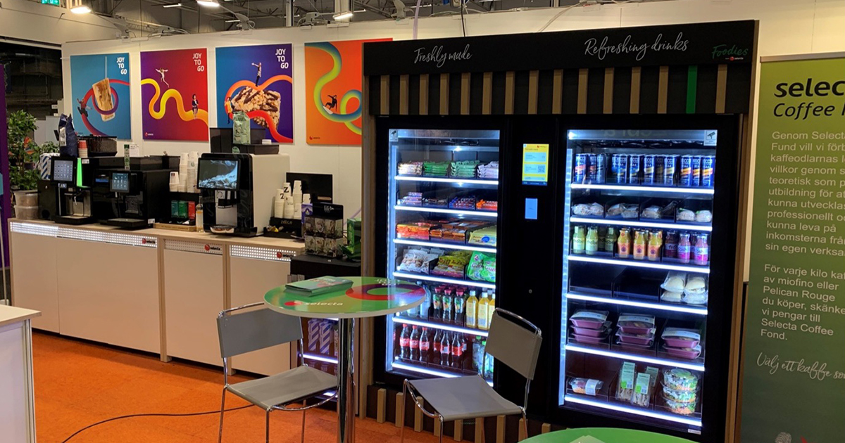 Nu när de flesta är tillbaka på kontoret igen efter pandemin fortsätter det vara trendigt att ta extra väl hand om sin personal. Selecta fanns på plats på mässan och erbjöd kaffe-, te- och matlösningar tillsammans med leverantören Tekompaniet. Extra intressant var deras smarta kylar med viktkänsliga hyllor – en teknik som ett Borås-företag ligger bakom.